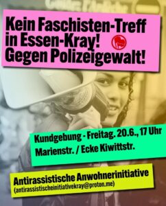 Haftalardır „Heimat“ adlı yapı etrafında toplanan eski NPD bağlantılı faşist gruplar, Essen Kray semtinde göçmenleri taciz ediyor, polis koruması eşliğinde halkı kin ve düşmanlığa teşvik eden ırkçı ve antikomünist sloganlar atıyor.