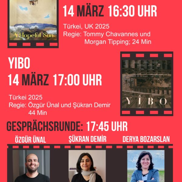 Ardından “YIBO” gösterilecek. Yönetmenler Şükran Demir ve Özgür Ünal ile yapımcı Derya Bozarslan’ın (Hafıza Merkezi İstanbul) katılımıyla gerçekleşecek söyleşi, Türkiye’de hakikat ve hafıza çalışmalarının önemini bir kez daha hatırlatacak. Festival, bu yıl Berlinale’de gösterilen İlker Çatak imzalı “Sarı Mektuplar” (Gelbe Briefe) filmiyle sona erecek.