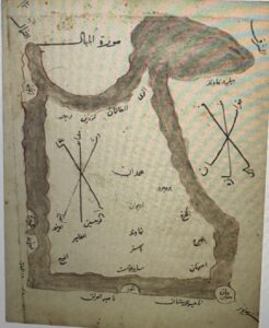 İbn Hevqal’in (ö.988) 977 tarihli “Suretü’l-Arz/Dünyanın Yüzü” isimli eserinde Azerbaycan-Van-Hemedan üçgeninde ‘Mesayüfu’l-Ekrad we Meşatîhim/Kürdlerin Yaylak ve Kışlakları’ haritası. İstinsah:16. yüzyıl. ss:62. BNF Gallica, Arabe 2214.