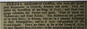 J. Colliers’in 1688 yılında basımı yapılan “Historical Dictionary” isimli sözlüğünde ‘Curdes/Kürdler’ hakkında açıklamalar.