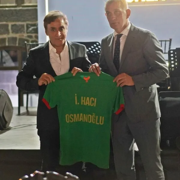 Ameda paytext Hacıosmanoğluyî mêvan kir. Êvara rojê ew, waliyê çav li qeyûmiyê û hevşaredarên Amedê li ser maseyekê rûniştin. Kêf û seyran. Dor hat veguhestina formayan. Hacıosmanoğluyê min û te formaya Tîma Tirkiyeyê ya Neteweyî diyarî hevşaredaran kir.
